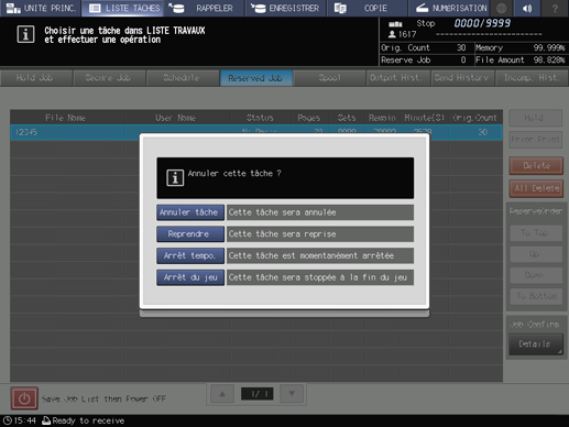 Explication supplémentaireLes tâches suspendues et réservées de la liste seront enregistrées.