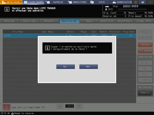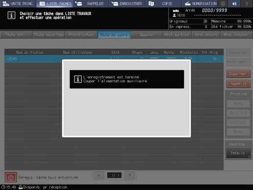 Appuyez sur EnregListeTravail puis extinct dans le coin inférieur gauche de l'écran.