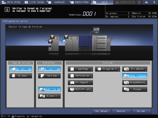 Appuyez sur l'onglet COPIE pour afficher l'écran COPIE.