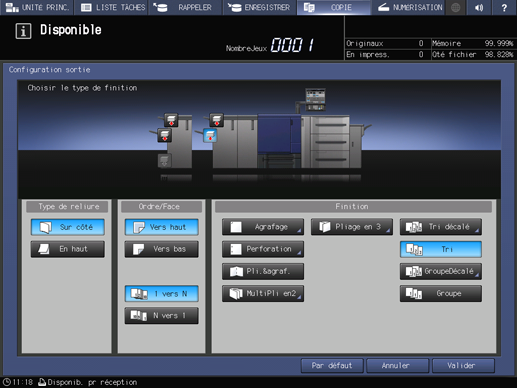 Appuyez sur l'onglet COPIE pour afficher l'écran COPIE.