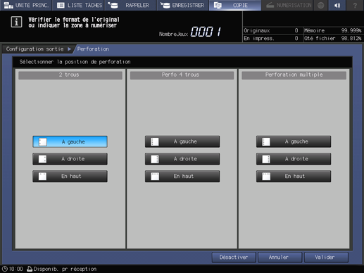Sélectionnez la touche de position de perforation souhaitée sous Perforation multiple.