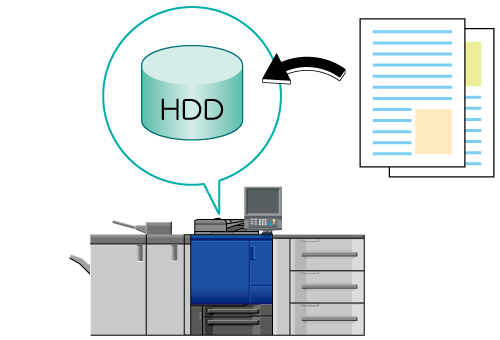 Numérisez l'original chargé sur l'ADF ou la vitre d'exposition à l'aide de la fonction copie et mettez-la en attente ou enregistrez-la sur le disque dur en tant que tâche de copie.