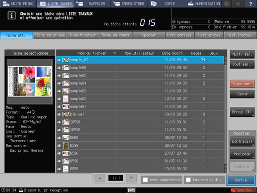 Appuyez sur l'onglet LISTE TÂCHES sur l'écran tactile de la machine.