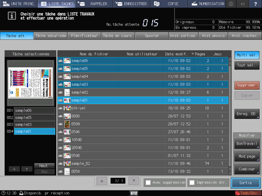 Vous pouvez imprimer une tâche en attente depuis l'écran tactile de la machine.