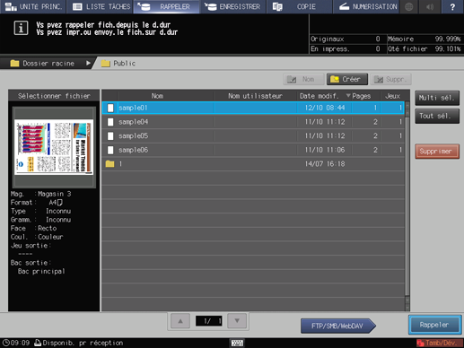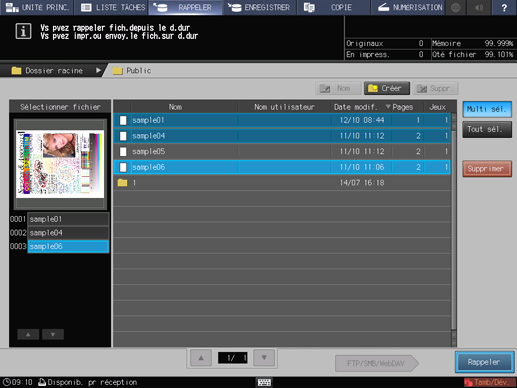 Sortir efficacement les données|Impression d'une tâche enregistrée sur disque dur : opération de la machine