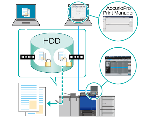 Imprimez une tâche sécurisée à l'aide de AccurioPro Print Manager.