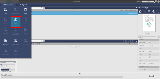 Vous pouvez utiliser AccurioPro Print Manager sur un ordinateur pour enregistrer une tâche en attente en tant que tâche enregistrée sur disque dur.