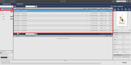 L'écran Modifier tâches (réglage d'impression) se referme et le contenu modifié est enregistré. Lorsque le stockage est terminé, Modifié apparaît dans le champ État de la tâche à afficher dans la liste des tâches en attente de AccurioPro Print Manager.