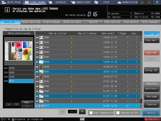 Sélectionnez la tâche à imprimer.