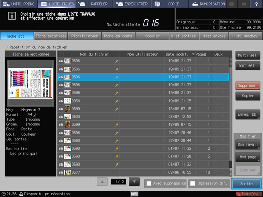 Appuyez sur LISTE TÂCHES sur l'écran.