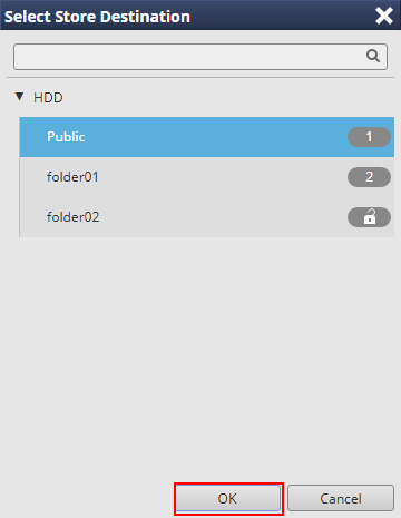 Explication supplémentairePour sélectionner un dossier protégé par un mot de passe, entrez le Mot de passe dans l'écran suivant, puis cliquez sur OK.