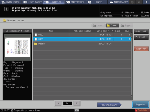 Si la tâche d'impression souhaitée se trouve dans le Dossier racine, sélectionnez-la dans la liste.