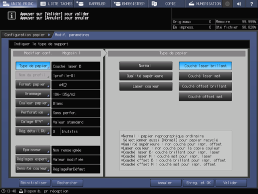 Gérer les couleurs|Chargement et enregistrement du papier (Couché laser brillant)