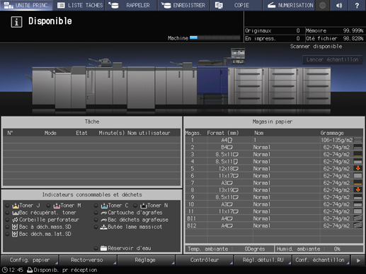 2. Sur l'écran tactile de l'imprimante, appuyez sur Réglage papier sur l'écran UNITÉ PRINC.