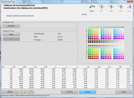 L'assistant vous permet de créer un tableau de correction avec la fonction Exact Color et d'appliquer le tableau de correction dans le contrôleur comme retour d'information pur améliorer la précision de reproduction des couleurs.