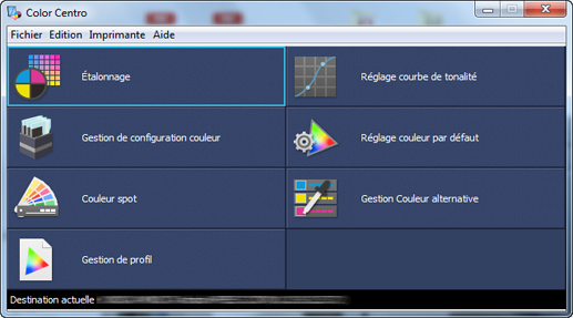 L'écran supérieur de Color Centro s'affiche.
