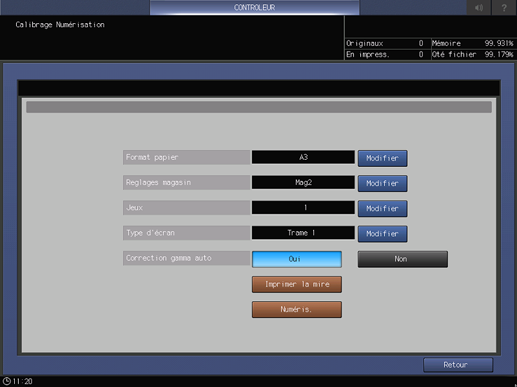 Affichez l'écran Calibrage Numérisation.
