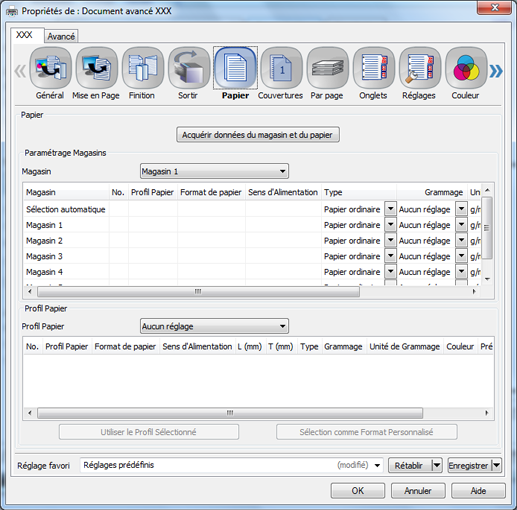 Cliquez sur l'onglet Papier, puis sur Acquérir données du magasin et du papier.