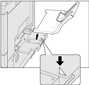 2. Pressez l'unité bannière MK-740 ou le bac de sortie de renfort bannière MK-740m recouvert(e) (bac d'extension alimentation) sur la machine.