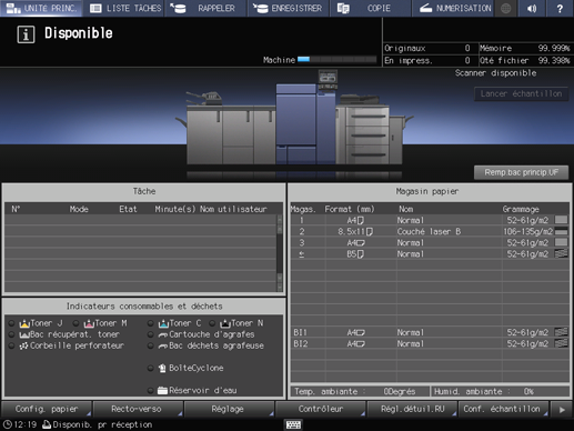 Appuyez sur Remp.bac princip.UF sur l'écran UNITÉ PRINC..
