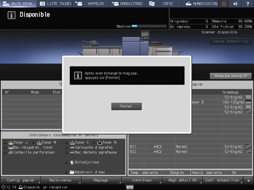 La boîte de dialogue s'affiche et le bac principal s'abaisse (environ 5 cm).