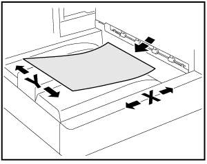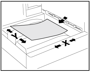 Concernant les indications pour le format du papier ou des originaux, le côté Y correspond à la largeur et le côté X à la longueur.