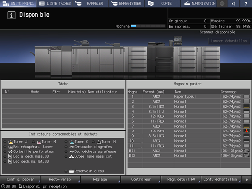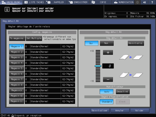 Explication supplémentaireLes magasins contenant du papier de gramages différents ne peuvent pas être sélectionnés en même temps.