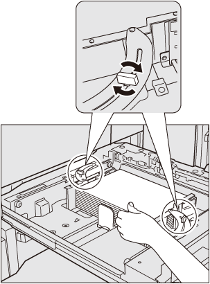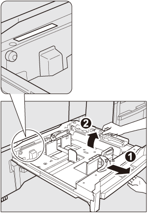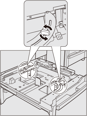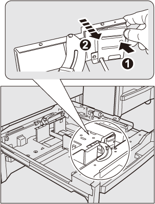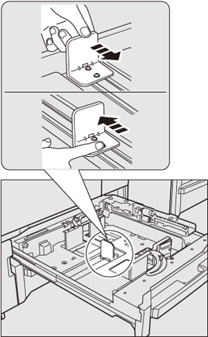 Explication supplémentaireDéterminez la position en vous aidant des indications de format figurant sur le plateau inférieur du magasin.