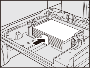 Assurez-vous d'aligner soigneusement la plaque-guide arrière sur le papier. Si un espace subsiste entre la plaque-guide arrière et le papier, la machine ne peut pas détecter correctement le format papier et il peut s'ensuivre des problèmes machine.