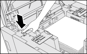 Explication supplémentaireDéplacez les deux plaques-guide latérales (à gauche) à la position qui convient selon les indications de format figurant sur le dessus des plaques-guide.