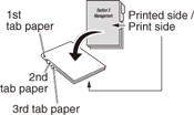 Explication supplémentairePlacez le papier à onglet dans le bac principal comme sur l'illustration affichée ci-dessus.