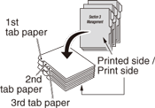 Exemple : 3 feuilles de papier à onglet sont insérées dans chacun des 3 jeux de finition (un total de 9 feuilles de papier à onglet)
