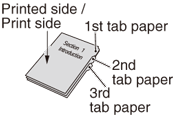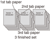 Exemple : 3 feuilles de papier à onglet sont insérées dans chacun des 3 jeux de finition (un total de 9 feuilles de papier à onglet)