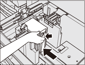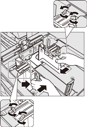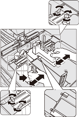 Rapprochez les plaques-guide latérales avant et arrière jusqu'à ce qu'elles n'avancent plus.