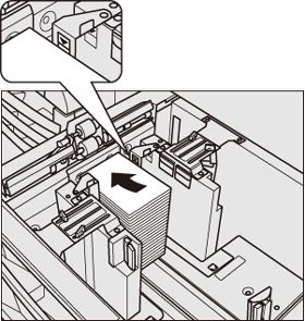 Explication supplémentaireEn poussant le levier de déverrouillage de la plaque-guide latérale avant, rapprochez les plaques-guide latérales avant et arrière jusqu'à ce qu'elles n'avancent plus.