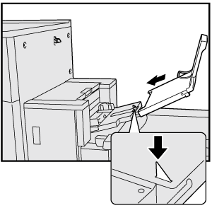 Pressez l'unité bannière MK-740 ou le bac de sortie de renfort bannière MK-740m recouvert(e) (bac d'extension alimentation) sur la machine.