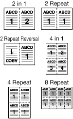 Imposition | Non, Reliure adhésive, Livret, 2 en 1 (Dimension complète), 4 en 1 (Tous formats / Horizontal), 4 en 1 (Tous formats / Vertical), Répétition 2 en 1, Répétition 2 en 1 - Invers (En Gauche), Répétition 2 en 1 - Invers (À Droîte), Répétition 4 en 1, Répétition 8 en 1 | Définissez ce réglage pour effectuer une impression d'imposition.