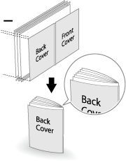 Décalage avec couv. | -1,0 mm à 1,0 mm | Toutes les feuilles est uniquement disponible. Entrez la différence entre les quantités de massicotage à appliquer aux feuilles autres que les couvertures. La valeur de réglage qui est modifiée en ajoutant ou soustrayant les valeurs spécifiées dans Massicotage bord supérieur et Massicotage bord inférieur est appliquée aux feuilles autres que les couvertures. La modification sur le côté positif (+) augmente la quantité de massicotage du corps. Les couvertures sont réalisées plus hautes que le corps. La modification sur le côté négatif (-) réduit la quantité de massicotage du corps. Les couvertures sont réalisées plus basses que le corps. La hauteur de la couverture n'est pas affectée selon si la valeur est modifiée sur le côté positif (+) ou sur le côté négatif (-). | |