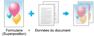 Cette machine autorise le rappel du formulaire désiré et l'impression des données de document sur le formulaire (surimpression).