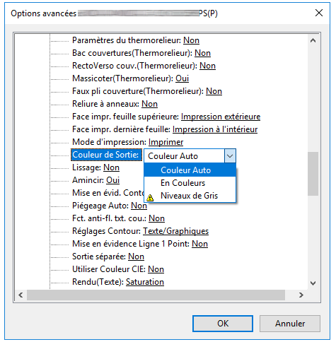 Impression|Sélection couleur : sélection des couleurs d'impression