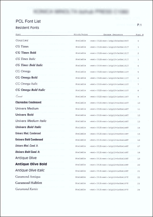 Vous pouvez imprimer les polices PCL intégrées à cette machine dans afficher liste.