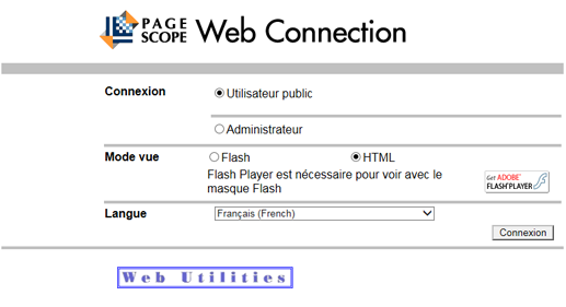 PageScope Web Connection propose le mode utilisateur ou le mode administrateur en fonction de la procédure de connexion.
