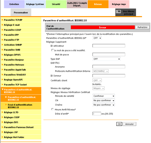 PageScope Web Connection|[Paramètres d'authentificat. IEEE802.1X]