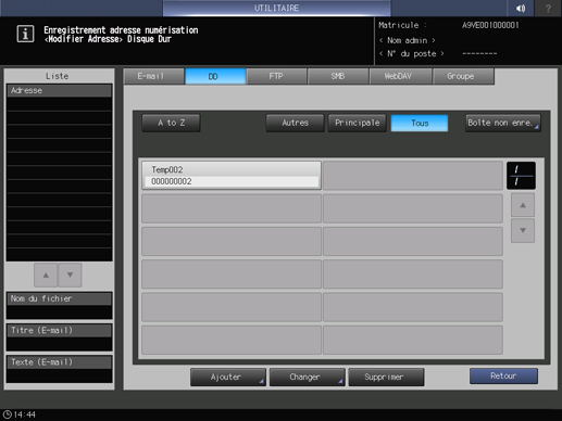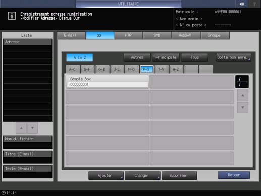 • condition préalableVous pouvez enregistrer 150 destinations sur disque dur (boîtes utilisateur) max.