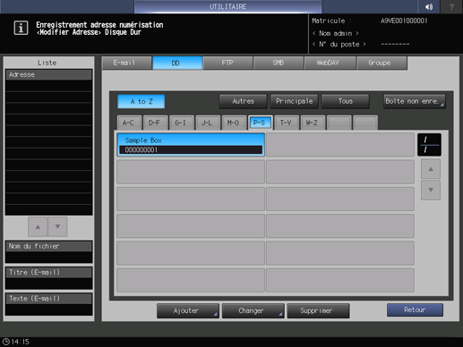 De même, vous pouvez supprimer des boîtes de destination non enregistrées de la liste de l'écran Boîte non enre.