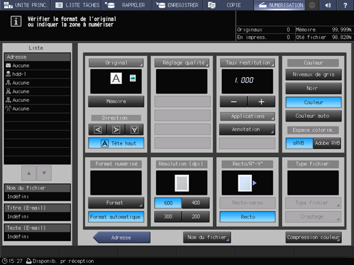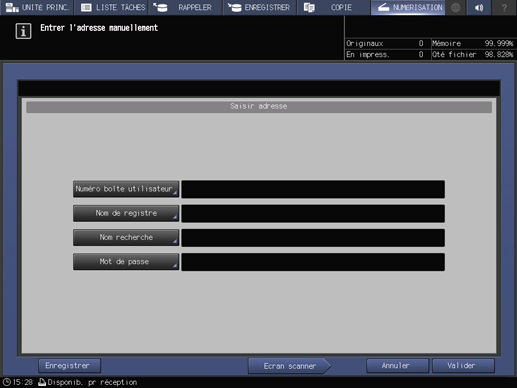 Explication supplémentairePour revenir à l'écran NUMÉRISATION, appuyez sur Adresse.