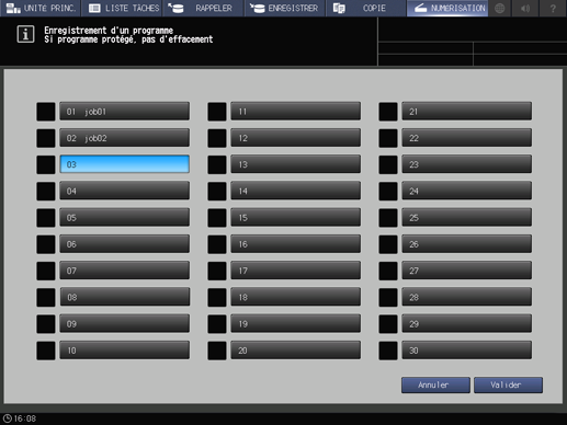 • condition préalableVous pouvez enregistrer un maximum de 30 programmes de numérisation.
