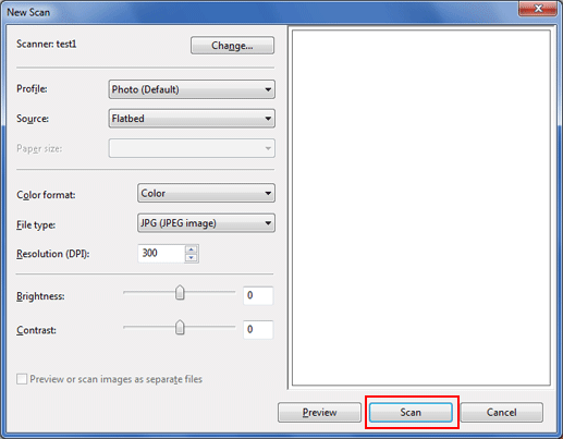 Configurez les réglages de numérisation et cliquez sur Numérisation.