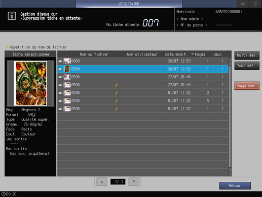 Utilisez cette fonction pour supprimer les tâches enregistrées sur le disque dur.
