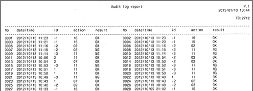 En cas d'opérations sans authentification par mot de passe, toutes les entrées du journal indiquent OK.